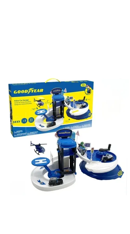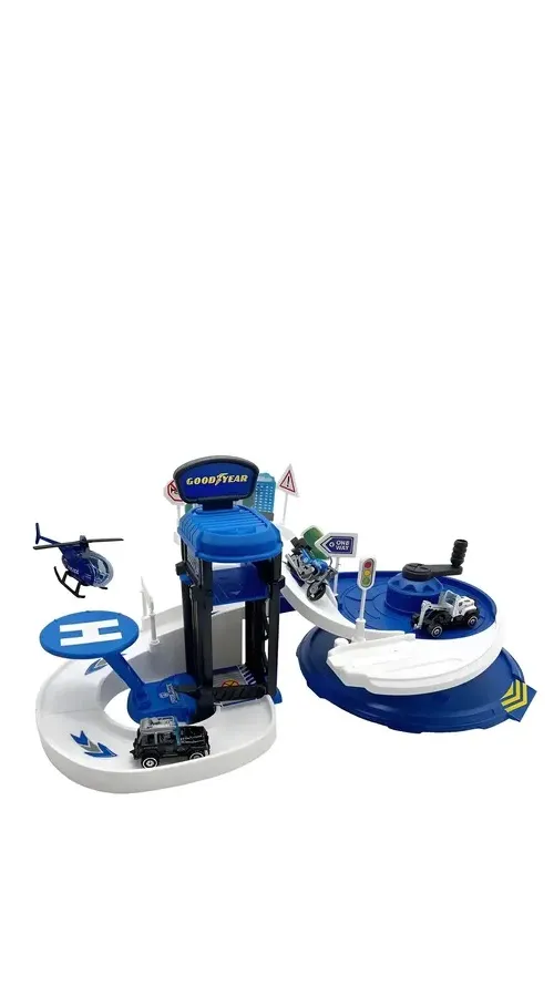 Estación Policial Con Garaje y 4 Vehículos Good Year® Color Negro Y Azul